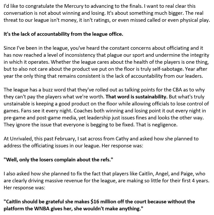 There will be a lockout. For Phee to step up like this, you know she ran it by the union first. This speech feels like another sign of how fed up players are with the league and the CBA process.