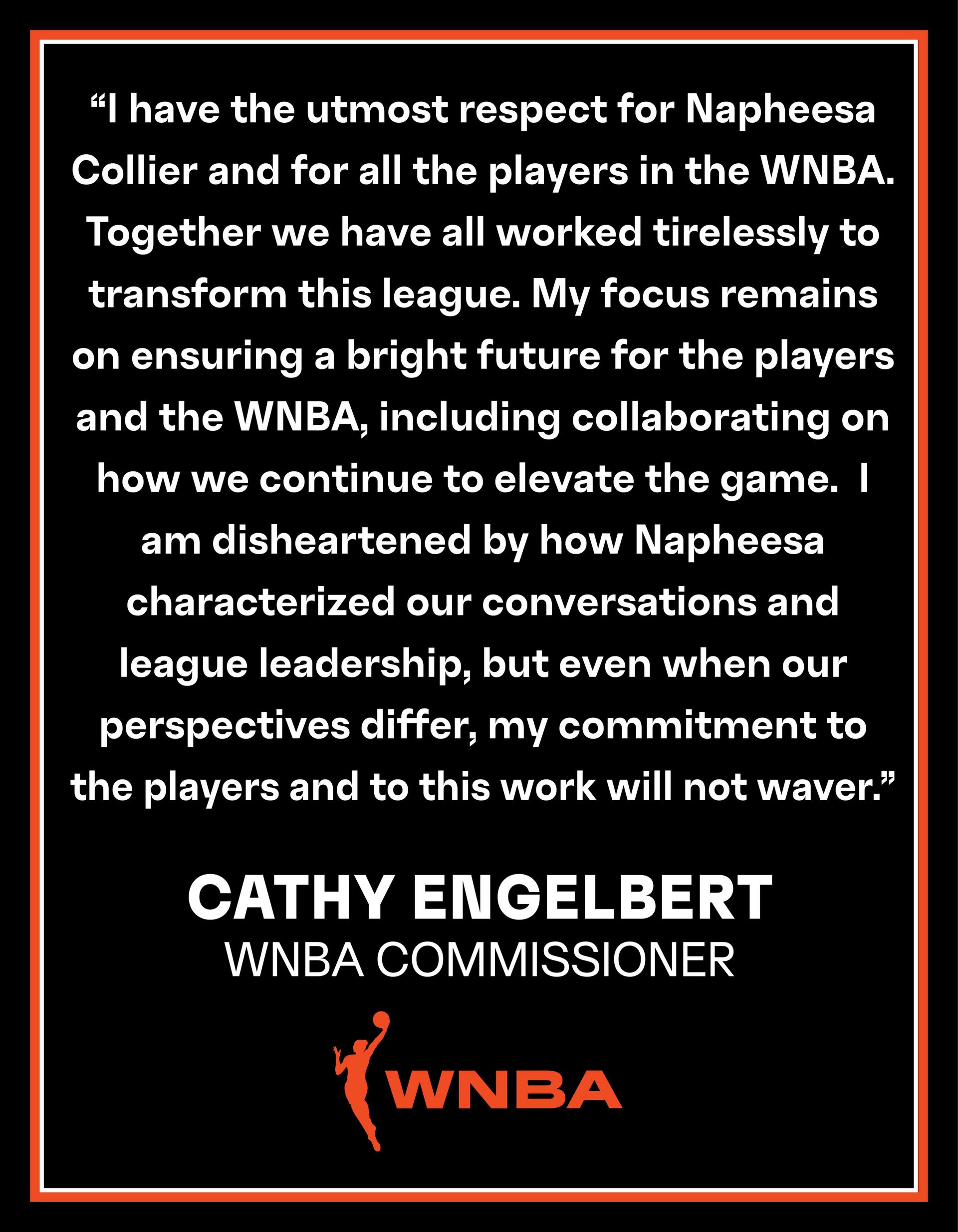 Cathy Engelbert is hired by and reports to the NBA Board of Governors. THERE IS NO WNBA BOARD OF GOVERNORS